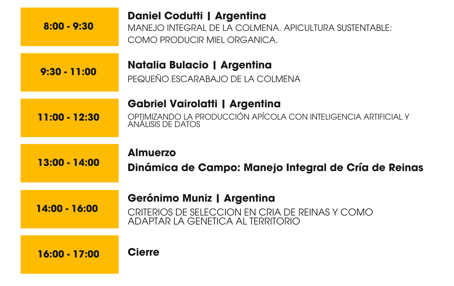 Reune a expertos, investigadores, productores y entusiastas de la apicultura de toda la región con el objetivo de promover el intercambio de conocimientos, experiencias y buenas prácticas en el sector apícola.