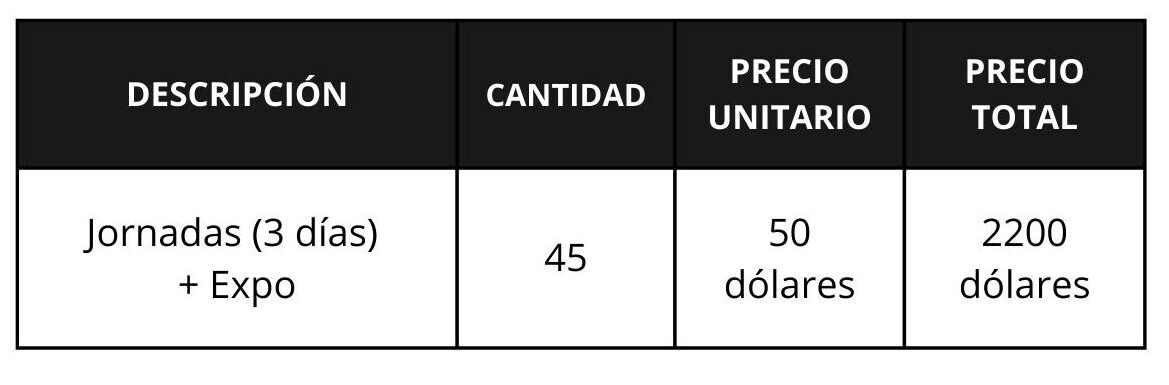 Desde la organización se ha tomado la decisión de aplicar descuentos a los asociados de CONFEDERAPY y de FILAPI que deseen participar de la Jornada Latinoamericana de Apicultura y estén participando en grupos de 45 personas, en ese sentido, estaremos ofreciendo tarifas especiales que incluyen descuentos por cantidad y se estaría aplicando la siguiente tarifa: